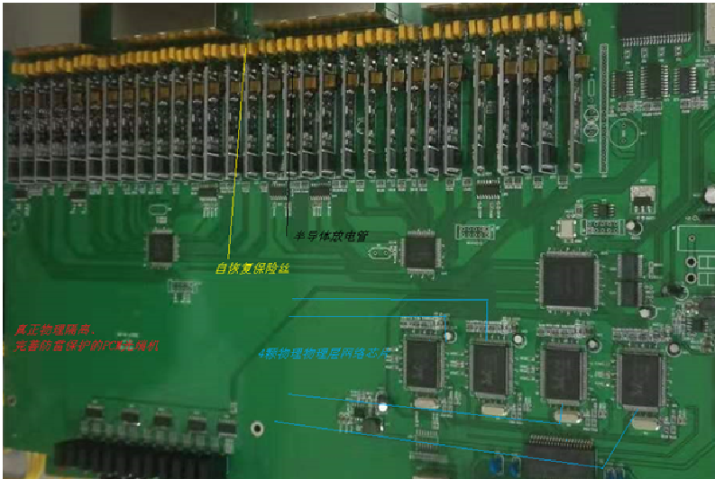 创基互联科技公司的物理隔离以太网产品,每个百兆/千兆以太网电口都有自己独立的接口物理层芯片与独立的的百兆/千兆带宽